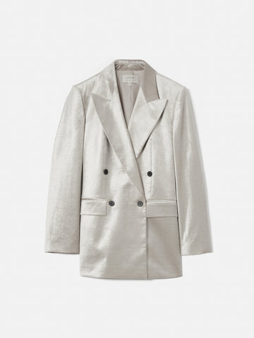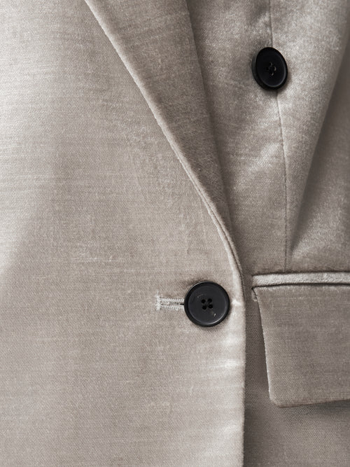 Cut from lustrous velvet, this tailored blazer showcases a straight cut longline silhouette and double-breasted fastening. Features a melton undercollar, internal piping, front flap pockets and a single back vent. Arrives oversized so size down for a more fitted silhouette. Style with matching trousers and waistcoat for the ultimate stand-out suit. Fit and Features
