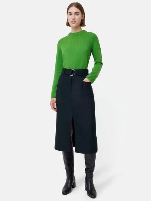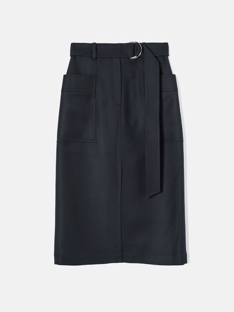 Wool Belted Utility Skirt | Navy