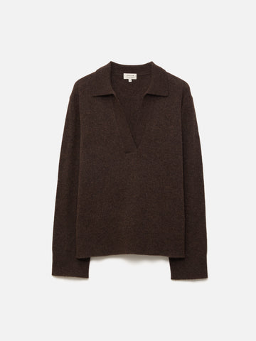 Our signature Compact Wool jumper made feminine with a sultry open neckline and a preppy collar. Super soft in a blend of wool and cashmere, we love the slightly cropped shape for creating a simple half-tuck with jeans, leather and tailoring.