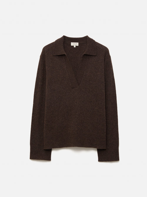 Wool Cashmere Blend Collar Jumper | Brown