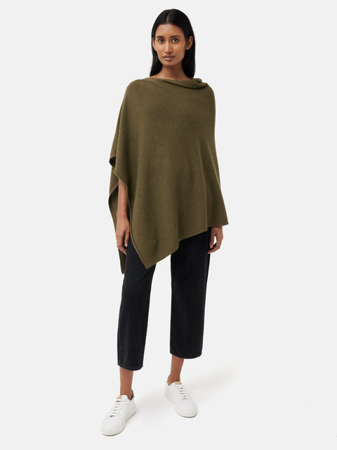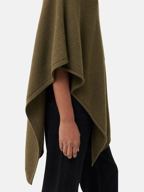 Wool Cashmere Blend Drape Poncho | Green