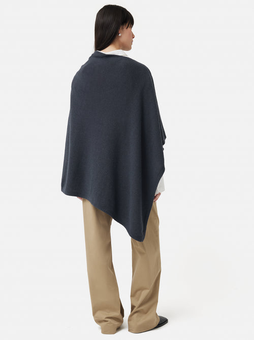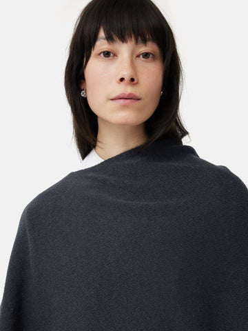 The most versatile layering piece in a wonderfully soft wool cashmere blend, this poncho can be rotated so the drapes can be positioned in multiples ways. Fit and Features