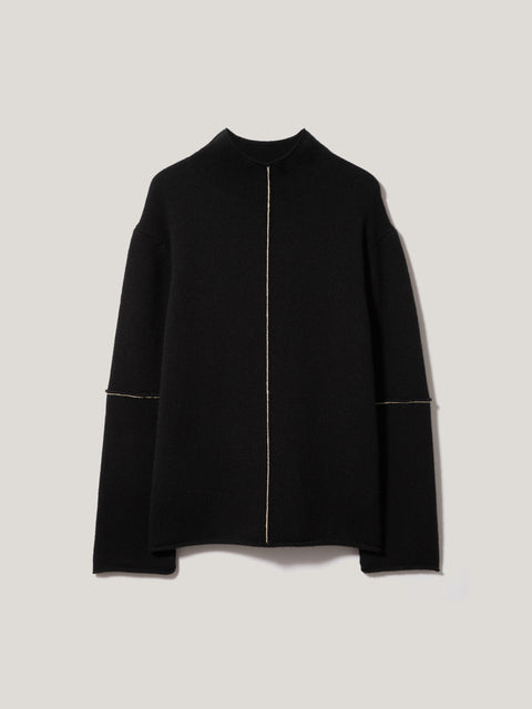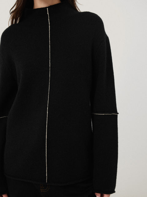 This cashmere blend jumper takes inspiration from 90s minimalism, where the collar is knitted in one with the body for a simple seamless line from neck to hem. A contrast linking seam lends a deconstructed feel, with a relaxed longline silhouette bringing a laidback feel to this mid-weight knit.