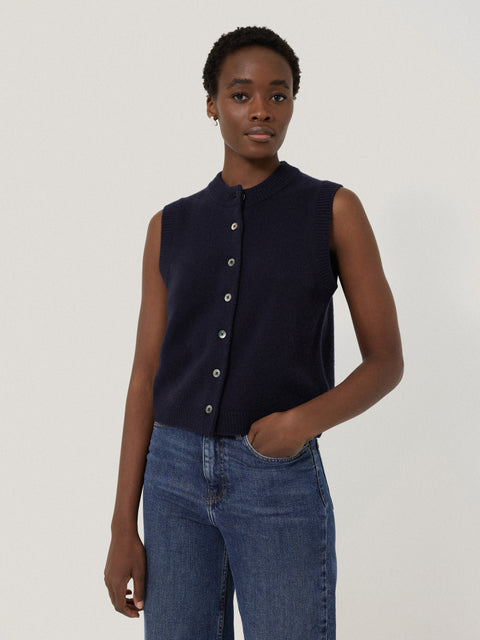 Wool Cashmere Blend Waistcoat | Navy