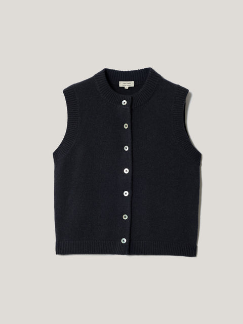 Cut from a soft wool-cashmere blend, this versatile waistcoat can be worn on its own or layered over casual separates. Featuring contrasting buttons and ribbed hems. Sofia is 5'9.5 and wears a size 8