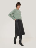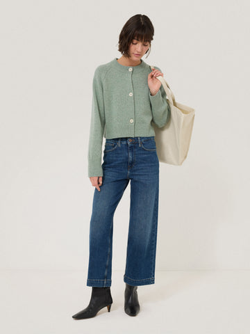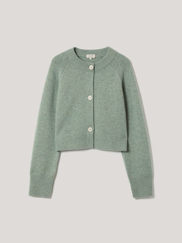 Cut for a boxy, cropped fit, this cardigan is a versatile layering piece for all seasons. The soft wool knit is complemented in a mint green hue, with contrasting buttons for a subtle twist. The perfect fit for wearing over high-rise silhouettes.