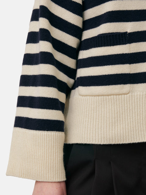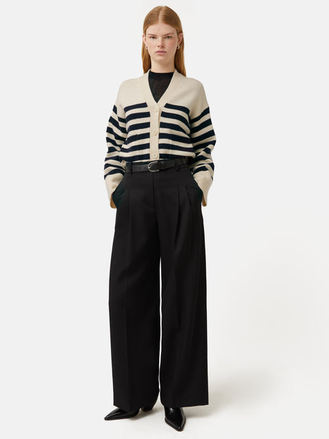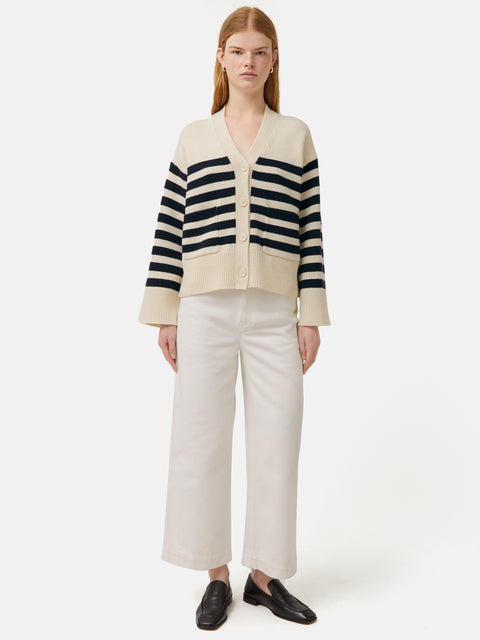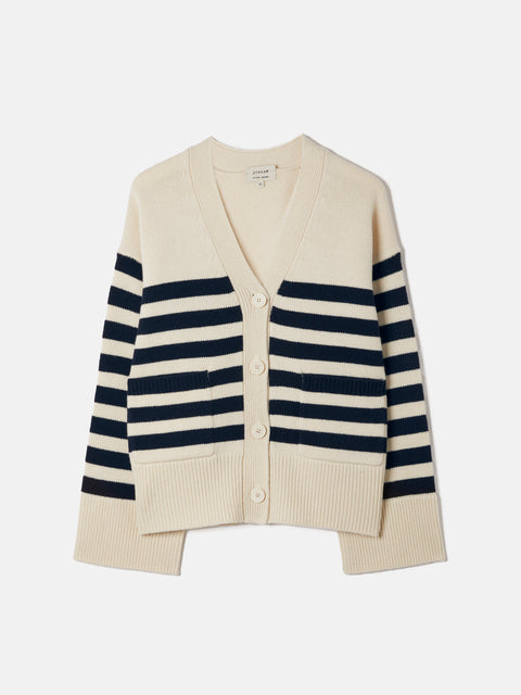 A wardrobe essential that embraces the enduring charm of stripes. Crafted from sumptuous pure wool, this cardigan boasts thoughtful details including front pockets, ribbing to accentuate the silhouette, and an elegant button-through front. Pair with your favourite denim pieces for a casual everyday ensemble.