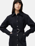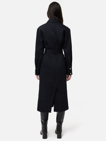 The ultimate investment piece, this two-in-one is crafted from a durable cotton twill to give it a structured silhouette that can double up us both a coat and dress. Metallic snap poppers, large side pockets and double d-ring belt add functionality as well as a contemporary edge. Open the poppers to wear it as an overcoat or closed with a belted waist for a work to weekend dress. Fit and Features